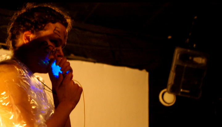 Evil performance, Labas – T.E.H.D.A.S. Elävä Arkistopäivä, Kaapelitehdas, Helsinki 2015. Still-kuvat videosta, kuvaaja/photo Juha Mehtäläinen. Live Archive Day, Cable Factory.