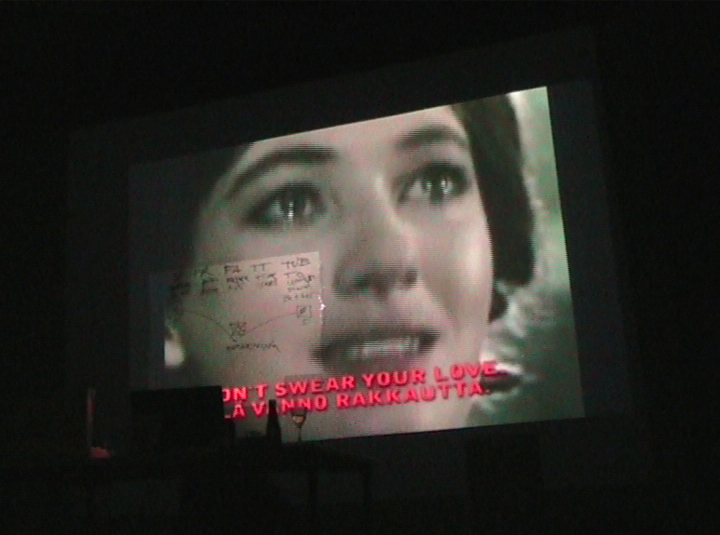 Fanny & Alexander, video 4.48 min, osa performanssia. Perfo!-klubi, Ravintola Telakka, Tampere 2009. Fanny & Alexander, video as part of the performance. Kuvaaja/Photo Dadanalle