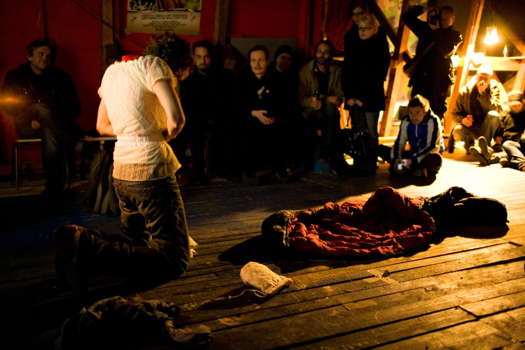 Iida Nikitin ja Jussi Matilainen, Performanssifiesta – Usko, Hirvitalo, Tahmelanranta, Tampere 2008. (Perjantaina 29.8. klo 18.00) Performance Fiesta – Belief. Kuvat/Photos Hirvitalo